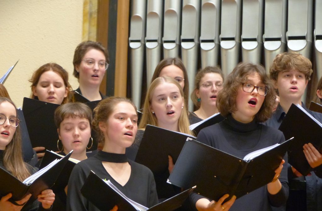 Der erste Abschnitt war Felix Mendelssohn Bartholdy gewidmet. Mit „Im Advent“ und „Weihnachten“ aus den 6 „geistlichen Sprüchen“ op. 79 sowie „Wachet auf, ruft uns die Stimme“ aus dem Oratorium „Paulus“ führte der Akademische Chor den Sinn gen Weihnacht. Auch wenn die etwa 90-köpfige Besetzung derzeit ungleich auf die Register verteilt ist (das Übergewicht haben die Altstimmen, während die Tenöre Verstärkung brauchen könnten), erstrahlten die bestens geschulten jungen Stimmen in einem bemerkenswert homogenen Gesamtklang und schufen, breit aufgestellt, eine großartige Raumwirkung.