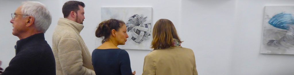 Mit Fotografie arbeitet Christine Dohms und erreicht dabei völlig gegenstandslos scheinende malerische Ergebnisse, denen sie Titel wie „spät im Jahr erglüht die Farbe“ gibt. Umgekehrt ist es bei Renate Gaisser. Sie malt florale Bilder in traditionellem Öl auf Leinwand („Sumpflilienkraut“), die von Ferne wie Fotografien oder Fotorealismus wirken, sich dem Auge beim Nähertreten immer mehr ins Abstrakte auflösen wie in die Pixel digitaler Fotografien. Birgit Krins-Gudat hat mit ihren Mischtechnik-Zeichnungen auf Holz eine ganz eigene Bildersprache gefunden und „bewegt H“ genannt: fast figürlich schon, dynamisch und durchaus zeichenhaft, auch in der zurückhaltenden Farbgebung, dabei aber zart und elegant.