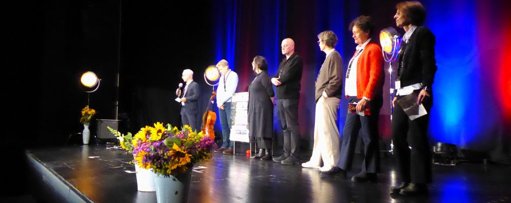 Bernhard Pörksen, Tübinger Medienwissenschaftler mit hoher Medienpräsenz, sollte sich auf zwanzig Redeminuten beschränken und umriss die Thesen seines jüngsten Buches „Zuhören. Die Kunst, sich der Welt zu öffnen“ deshalb eher anekdotisch, mit denen er gegen „die große Gereiztheit“ angehen und „Wege aus der kollektiven Erregung“ in den Medien und den öffentlichen Debatten aufzeigen will. Eine Lesungsbesucherin habe ihn neulich um eine Widmung für ihren Mann gebeten, „damit Fred endlich zuhört!“. Lacher gab es dafür und am Ende viel Beifall.