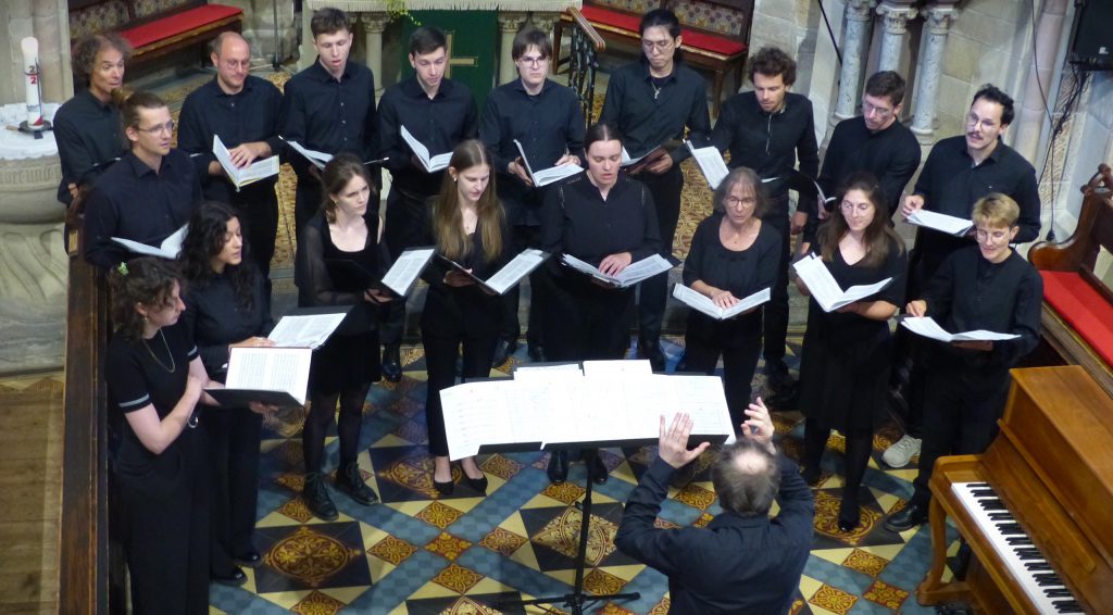 Der Kammerchor Concerto vocale Tübingen, 1996 durch Peter Unterberg gegründet und neben anderen Ensembles an der Universität angesiedelt, trat – terminbedingt – in einer verkleinerten Besetzung von zehn männlichen und acht weiblichen Choristen an. Wobei zu berücksichtigen ist, dass studentische Chöre wie Knabenchöre einer ständigen Fluktuation und damit einem hohen Anspruch an die jeweils „Neuen“ unterworfen sind.