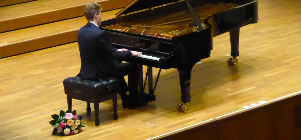 Der Beifall zuvor war etwas verhalten geblieben, was wohl auch mit dem nun nicht gerade überfüllten Festsaal zusammenhängen mochte. Aber zum Schluss feierte das Publikum diesen Klavierkünstler mit seiner furiosen Virtuosiät. Und Joseph Moog begann seine Zugaben-Reihe mit einem echten Kontrast. Er hatte George Gershwins „It’s wonderful“ selber bearbeitet, ganz nach eigenem Gusto: erstaunlich polyphon, mit orchestraler Klangwucht – was vielleicht ein wenig auf Kosten des Swing ging. Eine Chopin-Nocturne folgte, die zwar sanfter, einheitlicher im Charakter, feiner ausbalanciert war als die angeschärften Scherzi und die Polonaise, aber unter stilprägenden Deutungen wie der von Barenboim immer noch herausgestochen wäre – was aber eine Geschmacksfrage ist, keine von richtig oder falsch.