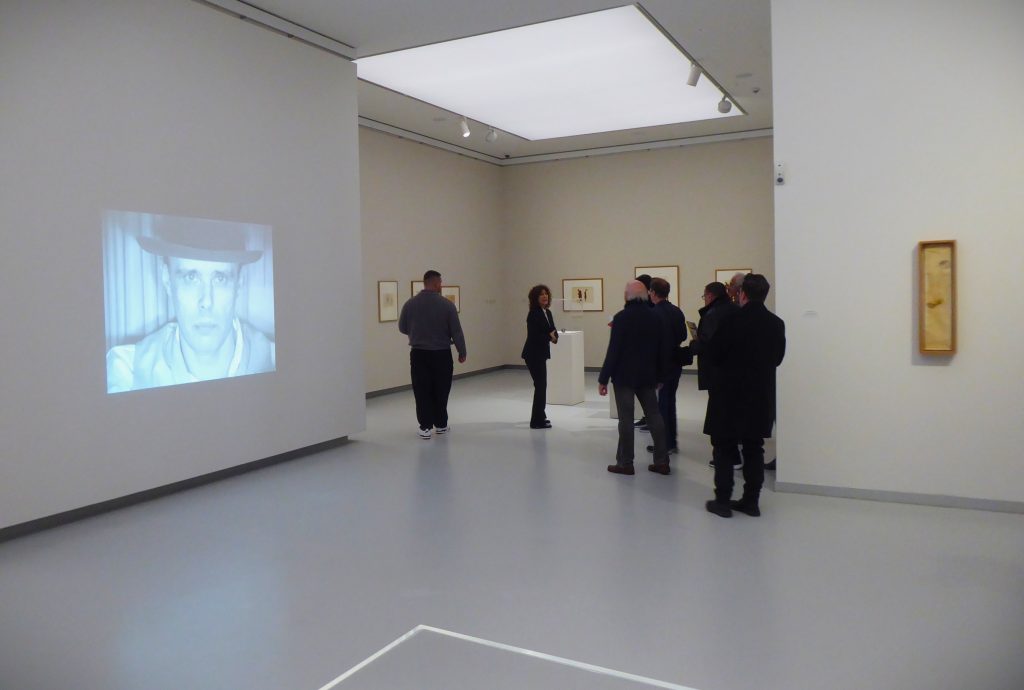 Direktorin Nicole Fritz hat diese Ausstellung nicht nur zusammengestellt, weil Beuys eng mit der Tübinger Kunsthalle verbunden ist. Die Stifter-Familie Zundel (Bosch) hatte Vorgänger Götz Adriani über ein paar Einzel-Expositionen hinaus auch mit dem Ankauf von Beuys-Werken beauftragt. Es gibt da also einen Fundus. Das erlaubt – mit den reichen Leihgaben vom Museum Schloss Moyland – einen chronologischen Blick auf sein Werk von ersten Zeichnungen und Bildhauer-Arbeiten bis in die Zeit, als der Künstler zum politischen Aktivisten wurde, aber auch zur zeitgeschichtlichen und kunsthistorischen Gestalt. Zum Mythos.