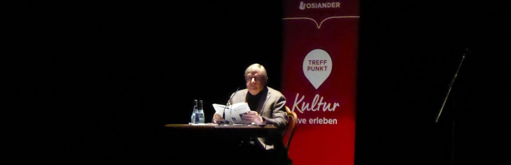Nachdem er noch Fragen beantwortet hatte, las Karl-Josef Kuschel abschließend den Epilog seines Buches en bloc und wurde dann mit großem Beifall zum Büchersignieren in den Vorraum verabschiedet.