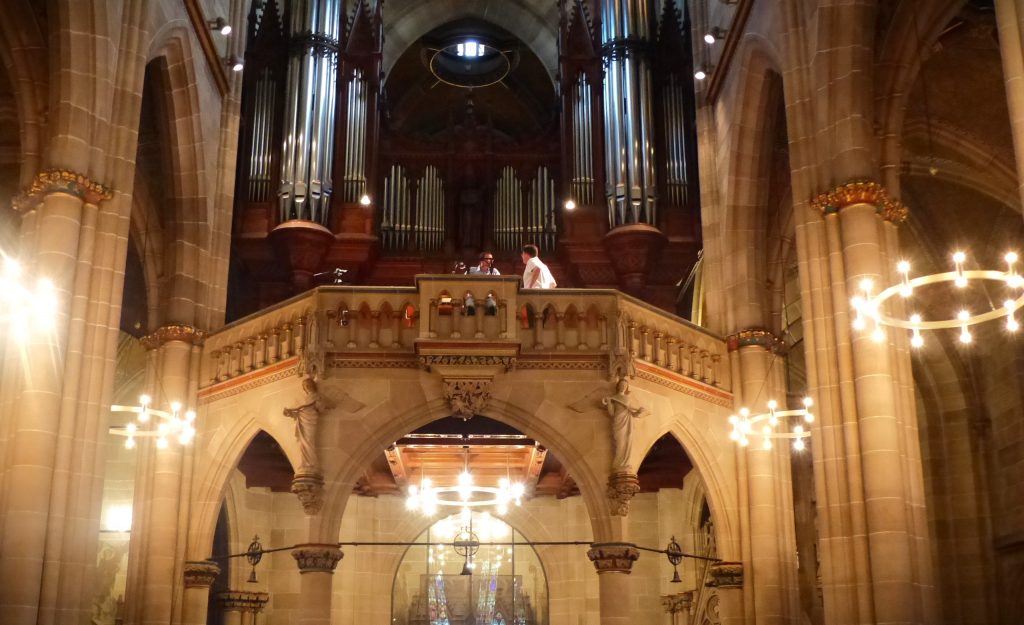 Als weitschweifigstes Stück des Abends erweist sich danach die Toccata C-Dur von Franz Schmidt (1874–1939), dessen „Zwischenspiel aus Notre Dame“ (ein grandios überhöhter Csardas) einigermaßen populär geblieben ist. Seine Toccata in C aus dem Jahr 1924 hört man seltener – vielleicht, weil sie schwierig zu spielen ist und trotz ihrer mitreißenden Machart à la française das Ohr durch mehrmalige scheinbare Schlusswendungen in die Irre führt? Um so erfreulicher, dieses Prachtstück für die große Orgel einmal von kundigen Händen vorgeführt zu bekommen.