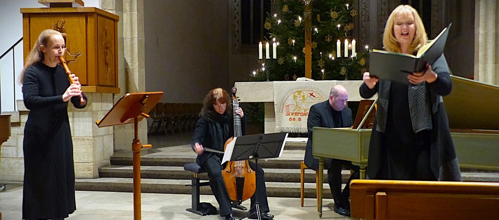 Sie musizierten als unbenanntes, doch bemerkenswert gut harmonierendes Ensemble ein abwechslungsreiches Programm „alter“ Musik aus der Zeit des Frühbarock, das gerahmt wurde von zwei geistlichen Kantaten von Georg Philipp Telemann aus dessen „Harmonischem Gottesdienst“.