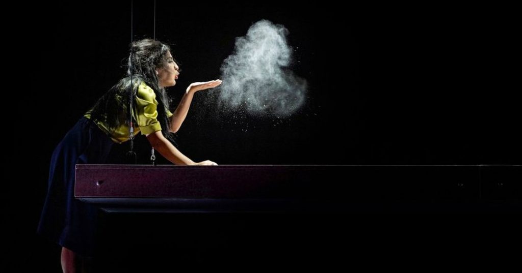 Atina Tabé spielt und spricht und singt das alles sehr schön. Schon allein der Klang dieses Farsi ist ein Genuss, mit der Musik von ihr selbst, Olivier Truan und Alex Wittwer versehen erst recht. Das gilt auch für die französischen Passagen. Übersetzt wird auf der Bildwand, wo auch ein paar Illustrationen der Autorin (und Actrice) sowie ein paar Lichteffekte flimmern. Die vielen erzählenden Elemente wertet die Inszenierung szenisch auf – und sei es durch Kleinigkeiten wie das Kneten des Teiges, das Mehlen der Haare aus Zorn und Verzweiflung, die Jonglage oder der Konfetti-Knalleffekt.