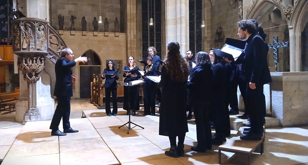 Peter Unterberg und sein studentischer Kammerchor Concerto vocale traten in der Tübinger Stiftskirche auf – stark dezimiert