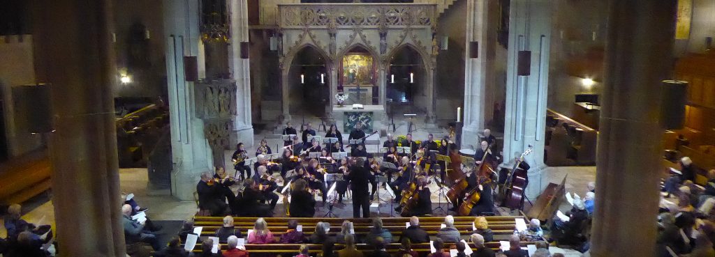 Dabei wollte Beethoven selber dieser allzu direkten bildlichen Deutung ein wenig vorbauen mit den Worten, die dem Konzert als Motto voranstanden: „Mehr Ausdruck der Empfindung als Malerei“. Schade übrigens, dass zum Erntedank selbst in katholischen Kirchen kaum noch die Gaben der Natur vor dem Altar dargebracht und prächtig drapiert werden. Aber inzwischen kommen Nahrung und Frucht ja nicht mehr vom Feld aus den Händen der Bauern, sondern aus dem Bioladen, mit Brief und Siegel. Die Stiftskirche war gut besetzt an diesem Abend eines sonnig-warmen Herbstsamstages.