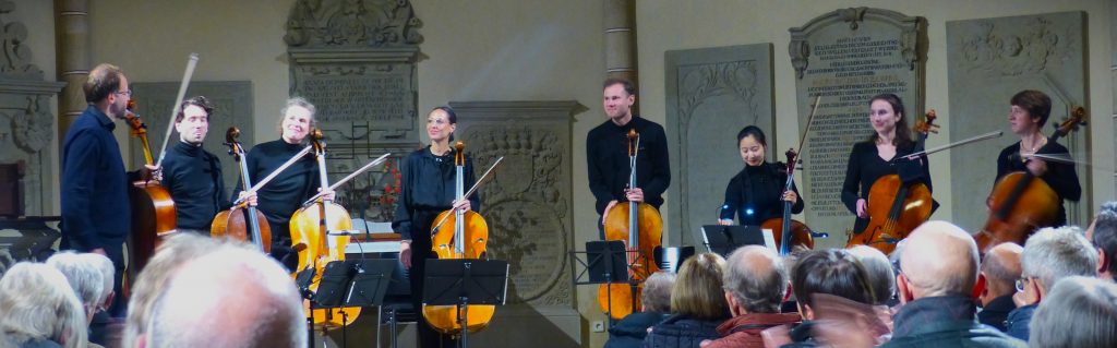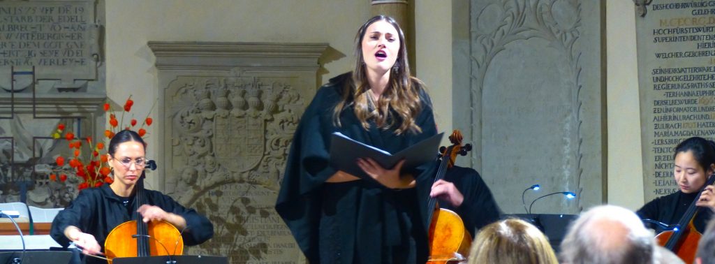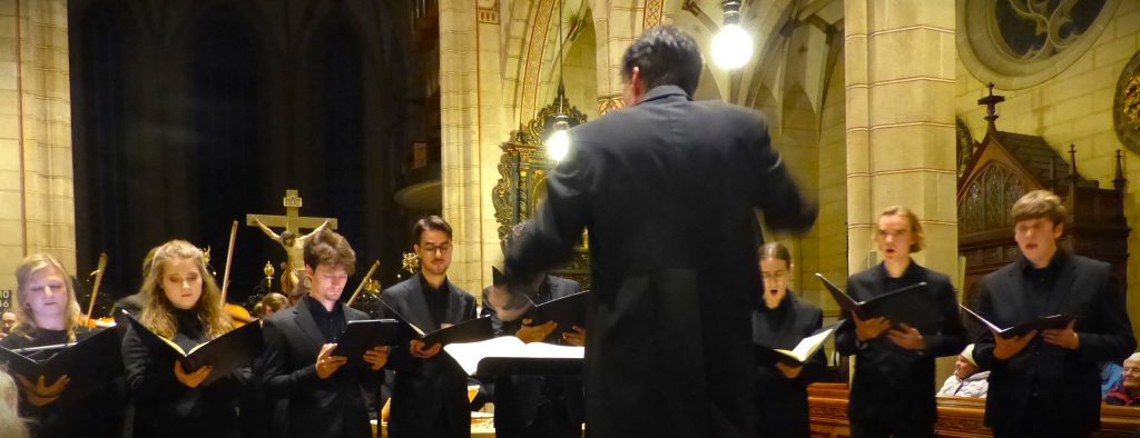 Ein kleines Manko war zu bedauern: Vermutlich um den 12-köpfigen Solistenchor akustisch zu stützen, wurde das „historische“ Instrumentalensemble hinter die Sänger und zu einer undankbaren Nebenrolle verdammt.