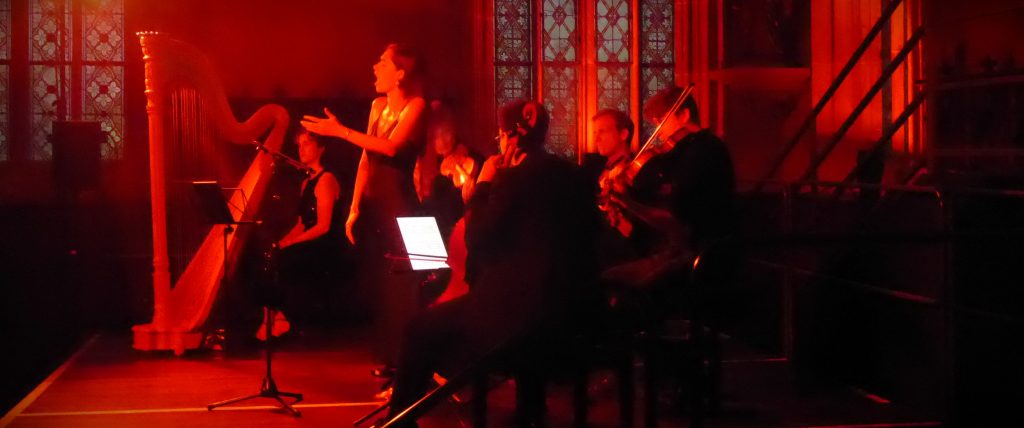 Neben dem Rothko String Quartet um den künstlerischen Leiter Joosten Ellée traten die Harfenistin Teresa Emilia Raff, Isabelle Raphaelis (Flöte) und die phänomenal vielseitige Mezzosopranistin Isabel Pfefferkorn im wechselnd farbig beleuchteten Saal vor ein Publikum, das nur zu einem kleinen Teil aus der Region kam. Der Abend suchte zunächst Bezüge zum Jahr 1933 und widmete sich dann Werken von Frauen von der Romantik an bis zur jüngsten Komponistengeneration.