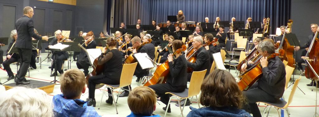 Das Abschiedskonzert wurde zum Familienkonzert; die renovierte Kusterdinger Festhalle war voll besetzt mit dem über 70-köpfigen Orchester sowie – dicht davor – Eltern, Kindern, Großeltern, Verwandten und Freunden. Eigentlich durften sie erwarten, dass beim Abschiedskonzert ein paar Worte über den zu verabschiedenden Orchesterleiter gesagt werden; doch auch in diesem Fall sprach (abgesehen von einer Laudatio im Programmheft) erneut nur die Musik für ihn, die er einstudiert hat; die aktuelle Werkfolge hat Schmid selbst ausgewählt, beginnend mit Leonard Bernsteins Ouvertüre zu „Candide“.