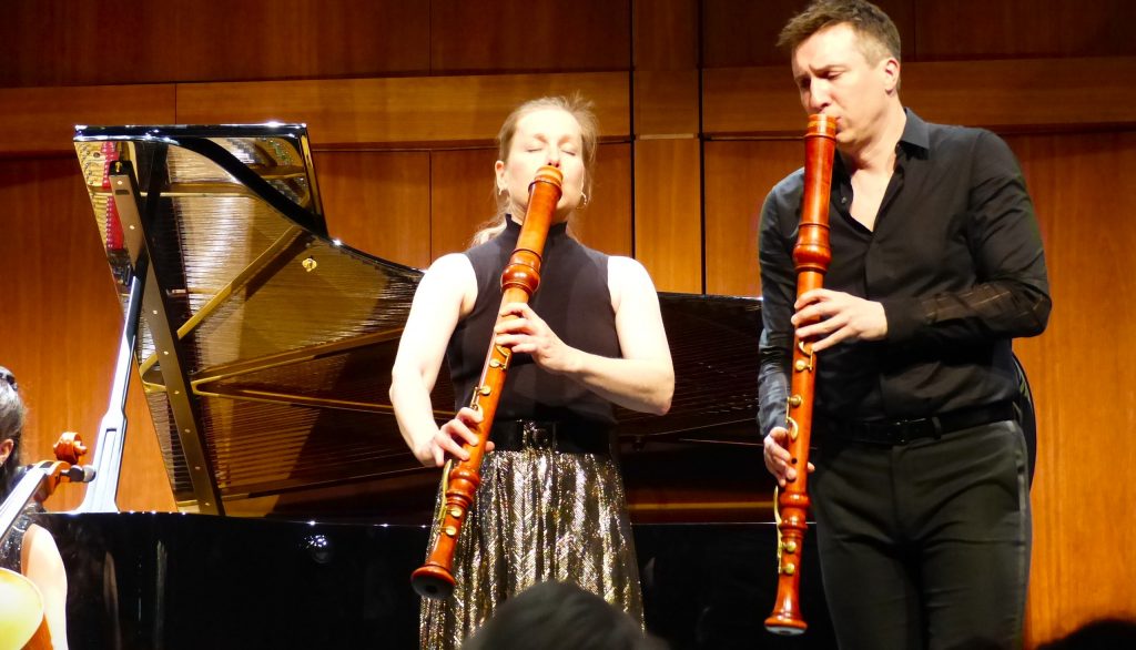 Andrea Ritter und Daniel Koschitzki mit ihren Bassblockflöten. Foto: Susanne Eckstein