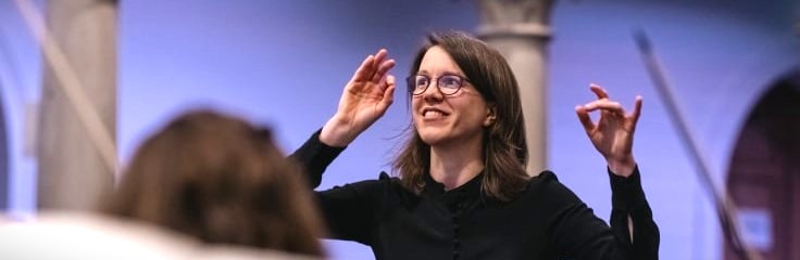 Für die ältesten Bearbeitungen der Chorals, von Michael Praetorius (1571 bis 1621) zwei- bis siebenstimmig gesetzt, hatte sich Judith Mohr einen besonderen akustischen Effekt ausgedacht. Ein kleiner Favoritchor sang die erste Strophe responsorisch hinter dem Ensemble und hinter dem Altar, wo der Bogen zum Chorraum eine akustische Schwelle bildet. Schon da war zu hören: ein ungemein fein ausgearbeiteter Klang, vibratofrei – was die Sache keineswegs leichter macht. Dazu, mit federndem Schwung und aufblühenden Steigerungen dirigiert, ganz an den Sprachen der Werke entlang, die folgten: Deutsch, Latein und Englisch.