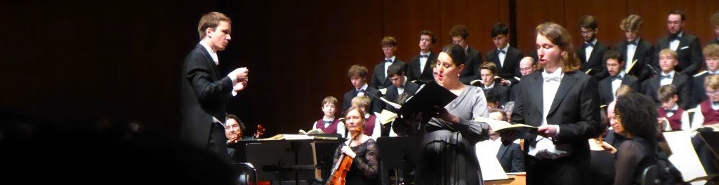 Eine ganz großartige Gestaltung bot Fabian Kelly als erzählender Evangelist: Ganz dicht im melodischen Fluss, sprachbetont, aber nicht überpointiert oder mit knallenden Konsonanten, in den Höhen immer leicht, nie auch nur eine Spur angestrengt oder gar gepresst. Auch in den virtuosen Arien, darunter dem energischen „Nun mögt ihr stolzen Feinde schrecken“ aus Teil VI, bewährte sich das. Gleichfalls weich und leicht, stets sehr sanglich phrasiert, nahm Bariton Hans Porten seine Bass-Partie. Auffallend war dabei auch, wie sensibel er sich von Duett bis Quartett an seine Partner anzuschmiegen verstand, auch die Knabensolisten.