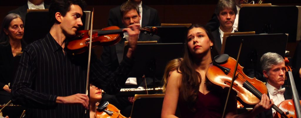 Die Solisten sind beide zunächst in den USA aufgewachsen und ausgebildet worden, der Geiger Stephen Waarts mit holländischen, die Bratschistin Emma Wernig mit österreichischen Wurzeln. Wunderbar aufeinander eingespielt, beide mit weichem, ganz sanftem Ton und großzügigem Vibrato aus dem Handgelenk, zeigten sie trotzdem eine ganz gegensätzlichen Spielstil. Waarts stand zwar in stoischer Ruhe, musizierte aber ganz expressiv poetisch und romantisch (bis hin zu gelegentlichem leichten Schleifen, das eigentlich verpönt ist).